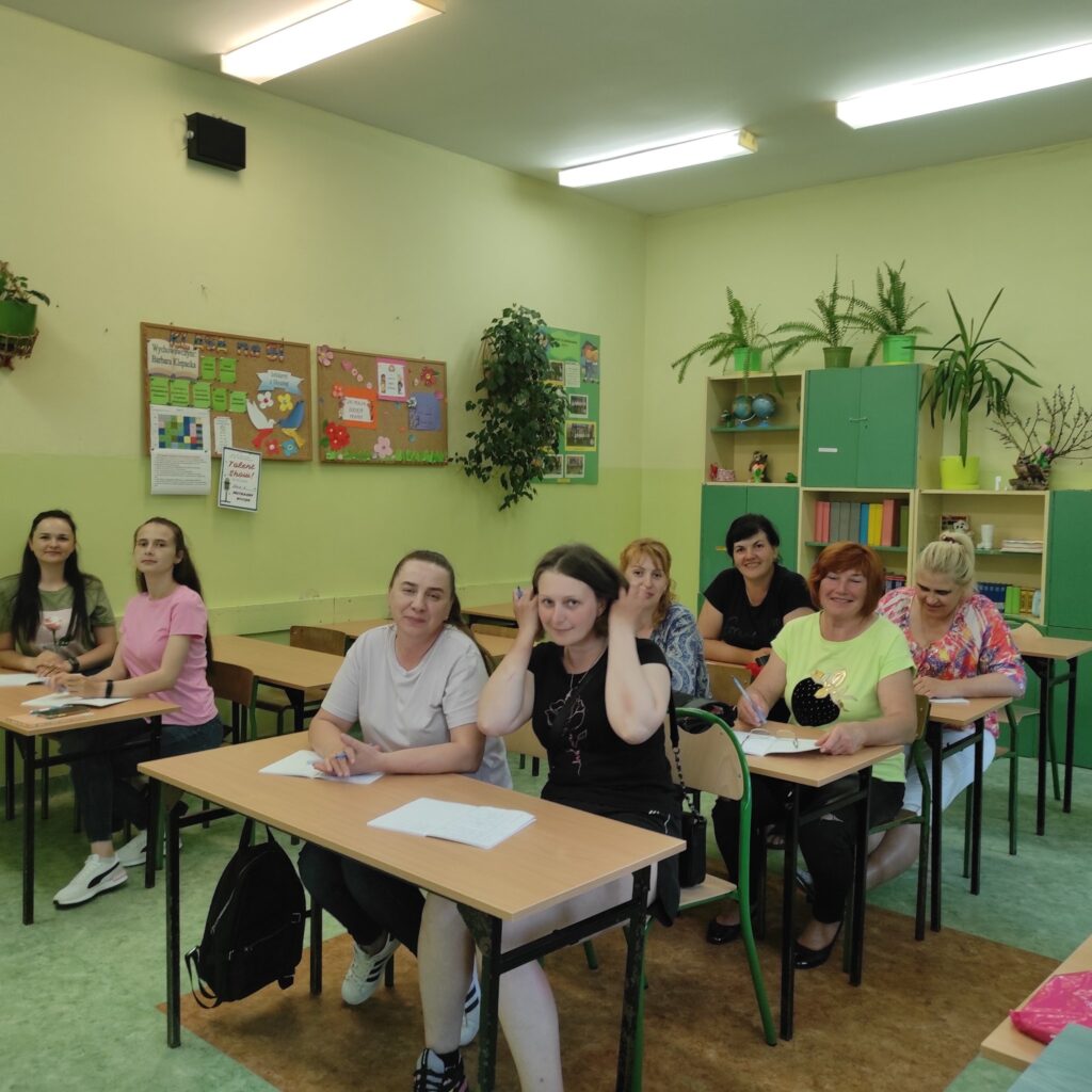 - prowadzimy zajęcia z języka polskiego dla chętnych Uchodźców w szkole w Białousach, w sumie korzysta z nich ponad 35 osób.