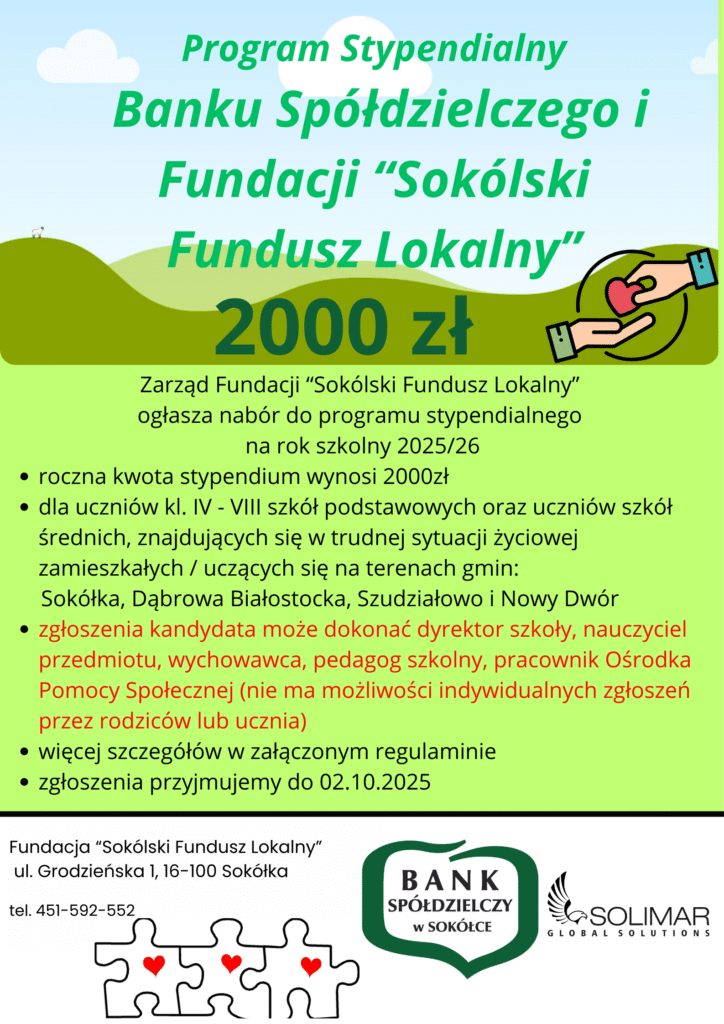 Dziękujemy Firmie Solimar Global Solutions za przekazanie darownizny wspólnie postanowiliśmy, że zasili ona nasz najnowszy program stypendialny Fundacji „Sokólski Fundusz Lokalny” i Banku Spółdzielczego w Sokółce. DZIĘKUJEMY piękna inicjatywa ludzi, którzy chcą pomagać.